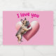 französische Bulldogge zeigt mit einem sehr großen rosa Herzen I love you. Der Bully springt lustig das Herz an, ,dieses schöne Tiermotiv ist für jeden Hundeliebhaber ein wunderbares Geschenk. Ein tolles lustiges Motiv welches einfach die Liebe eines Welpen zeigt.