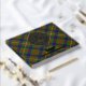 Clan Fraser crest badge surrounded by a strap and buckle over hunting tartan background. Custom front, back and spine text.