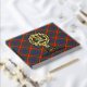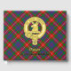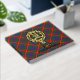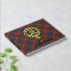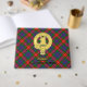 Clan Fraser of Lovat crest badge surrounded by a strap and buckle over tartan background. Custom front, back and spine text.