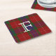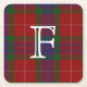 Colourful pub style paper coasters, with graphics of the traditional Scottish green, red, blue, and white clan Fraser tartan plaid pattern. Personalise the white large one letter monogram for yourself or as a great gift idea.