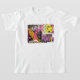 Good quality t-shirt, I didn't expect too much but it's good quality, matched the invites for my sons party and he absolutely loved opening this on his big day. Went straight to school with it, too! Print looks very good, vibrant colours, washing very well, too. I don't tumble dry tshirts so can't comment on that. Lovely idea for a birthday child!