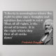 “Liberty is meaningless where the right to utter one’s thoughts and opinions has ceased to exist. That, of all rights, is the dread of tyrants. It is the right which they first of all strike down” Frederick Douglass quote. A truthful message and a portrait of Frederick Douglass.