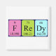 Fredy spelled out as F Re Dy (Fluorine Rhenium Dysprosium) on a magnet for the scientist in you.
