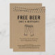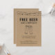 Free Beer (And a Birthday!) Funny invitation wording for a fun birthday party. The beer toast artwork is hand-drawn on a wonderfully rustic kraft background.