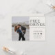 Fun and casual Save the Date announcement featuring "Free Drinks" in a fun script. Announce to your friends and family that you are getting married! Customise with your information and photo.