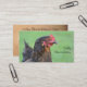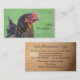 Chicken farmer's business card template with a photo portrait of a free ranging black crossbred hen on a green backgound, possibly a Black Rock or other Rhode Island Red cross, with an eggshell background on the reverse.