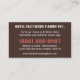 Here's an eyecatching business card for egg producing chicken farmers! A vivid rusty orange coloured Rhode Island Red heritage point of lay hen, with sharp untrimmed beak as birds usually are kept when in a spacious, free range, family farm type setting and not in an overcrowded commercial eggery. Rich brown and orangey red coloured stencil crate style lettering announces that you have fresh organic free range eggs, and the reverse side has numerous text fields for you to customise with your own personal and business information. This is the standard sized business card. Other sizes and designs available in the store. www.zazzle.com/countrycorner