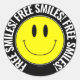"Free Smiles" Yellow Smilie Round Glossy Sticker. Designed by SMILIEWEAR™.