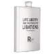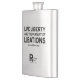 The product is a good size and came exactly as it was pictured. The lid is not attached to the flask, which could be dangerous on drunken nights... The print came out surprisingly well and looks very sharp. Would definitely recommend.