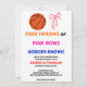 Beautifully designed 'Free Throws or Pink Bows' gender reveal party invitation. This invitation sets the tone for a memorable gender reveal where loved ones and friends gather to unveil the exciting news of your baby's gender. Feel free to customise/personalise this invitation to your liking. Enjoy your gender reveal!