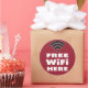 Free WiFi Here sticker with fun font and WiFi icon. Change the background colour if you like. Alert customers that free internet service is available in your business.