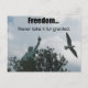 Beautiful picture of the Statue of Liberty keeping watch over the New York Harbour with bird flying in background and message: Freedom...Never take it for granted! Great message for this Presidential Election year.