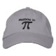 A whimsical Pi embroidery design. This custom embroidered baseball cap is making for a great humourous gift for the mathematician, the geek, the inquisitive mind. Great for a student, a teacher, an engineer or anyone that has this thing with numbers.