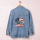 Freedom Ride: Retro Motorcycle and American Flag Denim Jacket