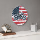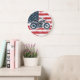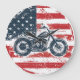 Freedom Ride: Retro Motorcycle and American Flag Large Clock
