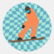 Freeride Snowboarder In Orange Suit Chequered Classic Round Sticker