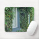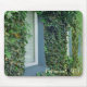 Ivy covered walls reveal three painted windows in Fremont, Washington