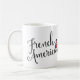 This is a scripted font design, with two entwined hearts with American and French flags, and the text: French American.