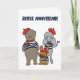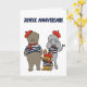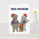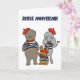 This birthday card features cartoon style illustrations of a bear, a rabbit and a poodle. The cute animals are dressed in French style blue and white striped shirts with red berets and neckerchiefs. The message on the front reads "Joyeux Anniversaire" (Happy Birthday in French) while the message inside this card is ready for your custom touch. It's the perfect birthday cards for anyone who loves all things having to do with the country of France.
