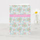 A pretty Birthday Card, with "Happy Birthday" in French and a pattern of pink Dogroses on a sky blue background; part of the Posh & Painterly "Rosy Posy" collection.