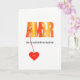 Send love in French to someone special on their birthday. This bright modern design has AMOUR in orange-yellow coloured capital letters with a pattern of white flowers. There is a red heart hanging from the A, and the greeting is "bon anniversiare" ("happy birthday"). Edit the text on the heart to personalise the card. The message inside can be edited too, or you can use the suggested "Je te souhaite un joyeux anniversaire. Que chacun de tes rêves devienne réalité!" ("I wish you a happy birthday. May all your dreams come true".)