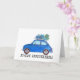 French Birthday card. A retro Fiat 500 in watercolor. Pour ce jour joyeux toutes mes felicitations!