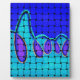 Outlined in black, this shape is filled with a gradient of purples and pinks, offering a vibrant contrast to the structured background. Its organic and flowing form enhances the dynamic feel of the piece.