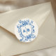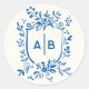 French Blue Botanical Crest Wedding Monogram Classic Round Sticker