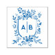 French Blue Botanical Crest Wedding Monogram Self-inking Stamp