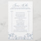 Transport your bridal shower guests back to the glamour of Versailles with the French Blue Chinoiserie Bridal Guess Who Game! The vintage baroque floral patterns in dreamy french blue are simply exquisite. This delightful game is perfect for bringing your bridal shower or bachelorette party to life! Teams will have a wonderful time debating the prompts and trying to guess which response belongs to the blushing bride or groom. A memorable way to celebrate the bride while bringing all your guests together in laughter and fun.