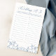Add a dose of vintage elegance to your bridal shower with the French Blue Chinoiserie Floral Shower A-Z Game! This stunning game features gorgeous french blue and white baroque floral designs for a touch of chinoiserie style. This delightful bridal shower game encourages your guests to come up with a word for each letter of the alphabet related to love, marriage and the bride and groom's relationship. It's sure to get everyone laughing and sharing sweet memories. The chic french blue and floral motifs add a sophisticated touch. The French Blue Chinoiserie Floral Shower A-Z Game is the perfect activity for a stylish vintage or chinoiserie themed bridal shower. Both the bride and guests will adore this gorgeous game!