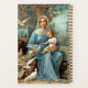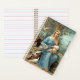 The French Blue Madonna religious notebook features an image from a beautiful antique French holy card printed at the end of the nineteenth century. Jesus and the Blessed Mother are surrounded by fluttering white doves and a hazy wooded landscape. The gentle blue and aqua image is printed on both the front and back covers.