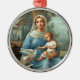 The French Blue Madonna ornament features an image from a beautiful antique French holy card printed at the end of the nineteenth century. Jesus and the Blessed Mother are surrounded by fluttering white doves and a hazy wooded landscape.