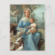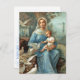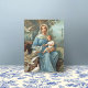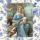 The French Blue Madonna postcard features an image from a beautiful antique French holy card printed at the end of the nineteenth century. Jesus and the Blessed Mother are surrounded by fluttering white doves and a hazy wooded landscape. The gentle blue and aqua image is printed on the front and a traditional postcard design is on the back.