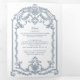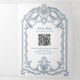 This tri-fold wedding invitation is an all-in-one invitation, details and RSVP invitation. The design features 3 French blue fine art antique frames on a white background. You can add your name to the frame on the front and a photo on the inside panel. An elegant design that any sophisticated bride will love.