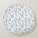 French Blue Toile Chinoiserie Floral Girls Name Round Cushion