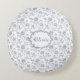 French Blue Toile Chinoiserie Floral Girls Name Round Cushion