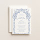 Elegant Victorian Inspired French Blue Frame, wedding invitation. Template features, trendy blue typography with details template on back.