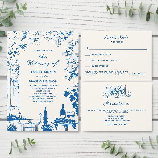 French Blue Whimsical Ribbon and Bow Wedding Enclosure Card