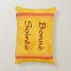 The cushion is small to medium sized. It can be washed. It is well constructed. The material used is pleasant and feels decent quality. It has a very slight plush feel which is good. It is well labelled and its care clearly stated. Theres nothing not to like about it. All in all a good item. The deduction of one star overall is due to long delays in delivery to the UK. It's not clear if this was due to Zazzle or somewhere else in the chain as I did not receive status updates of dispatch or progress. I cannot comment anymore on that other than to say that was our experience but it may not be the same for you. The printing was surprisingly close to what we were expecting. Its an art piece and on material so its hard to assess the precision of printing but it seems close to the original. The soft lines are reproductions of the original. The colour is a fair reflection of the painting. This was printed in the US and it looks like US quality. No issues.