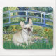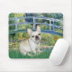 Lily Pond Bridge by Claude Monet, adapted to include a fawn French Bulldog. With varying hues of green and blue, this serene scene is one of Monet's most popular paintings.