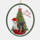 This ornament was created for the pet lover. One look at it and your heart will melt. The design features a French Bulldog lying on a red pillow under the Christmas tree. The puppy is waiting for Santa because he has a gingerbread cookie for him. I also added a cutout of a cat in a Santa hat. This is a cute collage ornament that you will not find at the mall or anywhere else. Buy this ornament for yourself or give as a gift for that special someone.