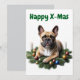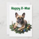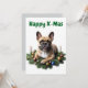 French Bulldog lies in a brightly decorated Advent wreath during Christmas time. The cute dog has made itself comfortable by candlelight in the fir greenery. Cheerful colors round off the beautiful, wintry and modern animal motif.