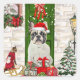 French Bulldog Christmas sitting outside decorated home with Christmas wreath, Christmas tree is a perfect Christmas gift idea for dog lovers.
