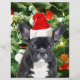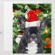 Cute French Bulldog with Christmas Tree Ornaments Snow Man in background.
