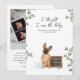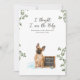 Soft greenery accents and a clean, timeless layout keep the focus on the story this card tells: a beloved pet welcoming a new baby into the family. The back of the card includes space for ultrasound photos along with a warm message announcing that a tiny new family member is on the way.