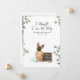 Let your first baby help share the big news. This sweet pregnancy announcement features a watercolor French Bulldog sitting proudly beside a small letterboard that reads “Our Pack Is Growing.” Above the illustration, the playful phrase “I thought I was the baby” adds a lighthearted touch that many dog families will instantly relate to.