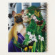 A Dryad holding a brown French Bulldog in a forest of Birch Trees.
