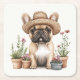 French Bulldog Gardening Flower Pots Square Paper Coaster