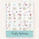 This notebook features a fun print of cute frenchies with pink and light blue paw prints and dog bones, red hearts and food bowls and yellow tennis balls.